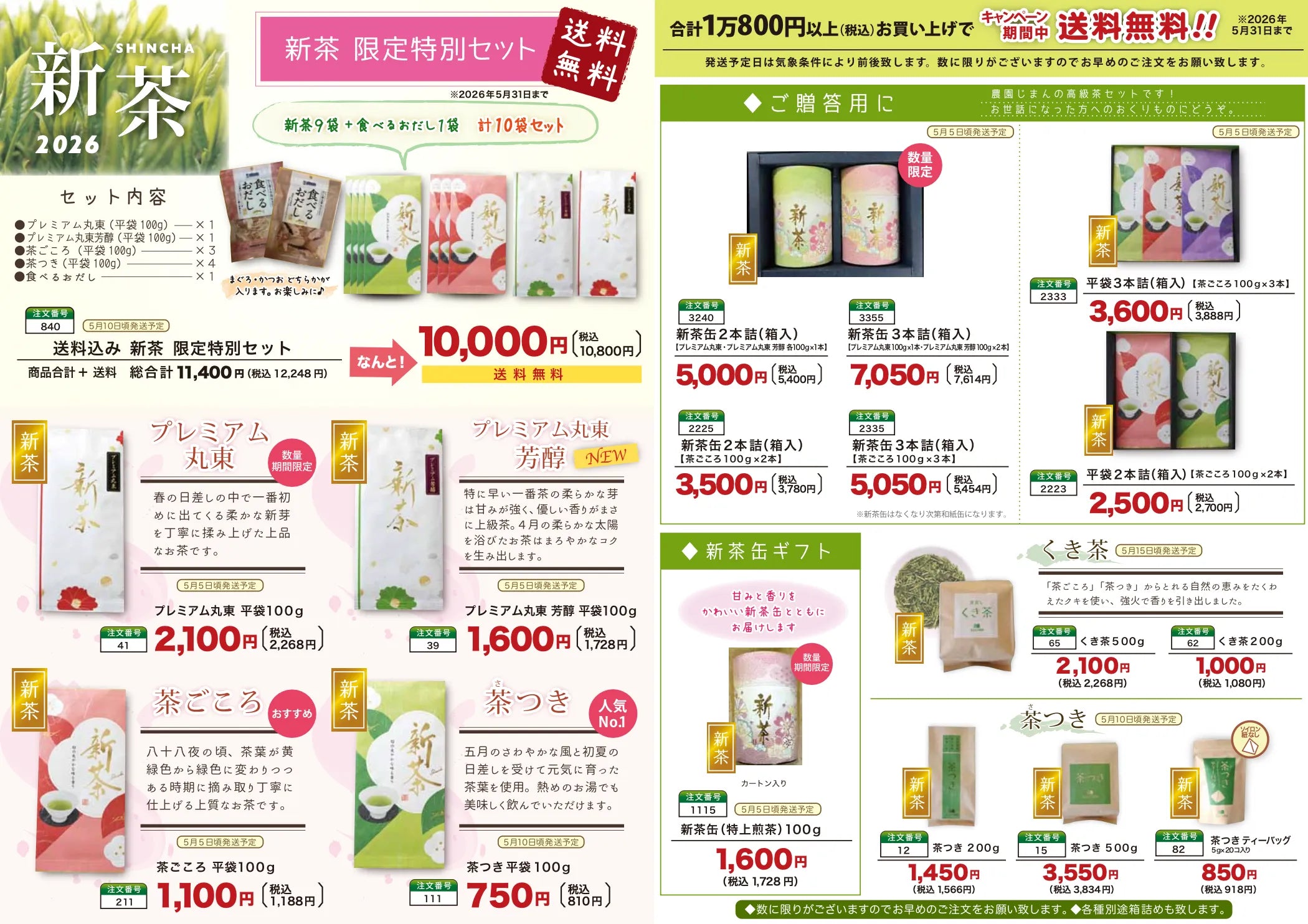 新茶の季節限定の特別なキャンペーンです。ぜひこの機会にお求めください。