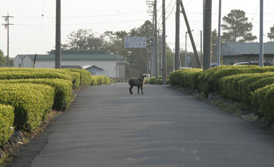 この写真は、近くの道路に突如現れたカモシカです。自然に囲まれた牧之原台地は、動物との触れ合いも垣間見れます。